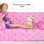 I think it's about time Barbie got a couch worthy of sitting on. Don't you? Kind of like this super fashionable, plush, pink Barbie sofa! Because of the quality in the design and fabulous fabric , she thinks that this Barbie furniture came from a fancy department store, but it was really made out of an old tissue box and receiving blanket (Shhhh). If you would like to upgrade … [Read more...] about Easy DIY Barbie Couch