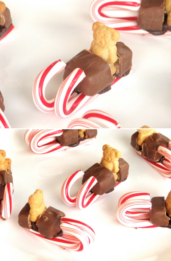 These candy cane sleigh crafts–or sled crafts, depending on what you have in mind–make for fun little party favors and gifts. The kids love them! They could take them to school as parting gifts for their classmates before Christmas break.